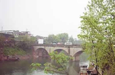 祁東清江橋位于縣境西53公里處的城連圩鄉(xiāng),橫跨祁水上游,因橋下流水清澈,故名清江橋,全橋共7拱,又叫七拱橋,始建于清朝中葉,距今約有兩百年。全橋長84米,寬5米,高9米,橋上曾建有橋亭,兩旁有對稱大木柱84根,遙望若游龍,頗為壯觀。其橋身之長,拱數(shù)之多,居全縣石拱橋之首。