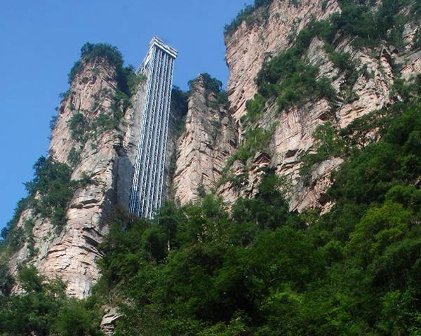 百龍?zhí)焯菀挥谑澜缱匀贿z產(chǎn)張家界武陵源風(fēng)景名勝區(qū),1999年9月動工,2002年4月投入營運,電梯的主要設(shè)備由德國知名電梯公司研究生產(chǎn),耗資人民幣1.8億元,被譽為“世界上最高、運行速度最快、載重量最大的電梯”,也因此被載入吉尼斯世界紀(jì)錄。