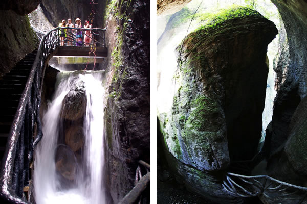 走在吊橋中間,必須保持自身的平衡方能安全通過(guò),不然就會(huì)在吊橋上搖擺不定。走出仙女峽谷,往下看,深不見(jiàn)底,七潭七瀑在奇險(xiǎn)之中不乏壯觀,這里曾發(fā)生過(guò)跳潭救女的故事。
