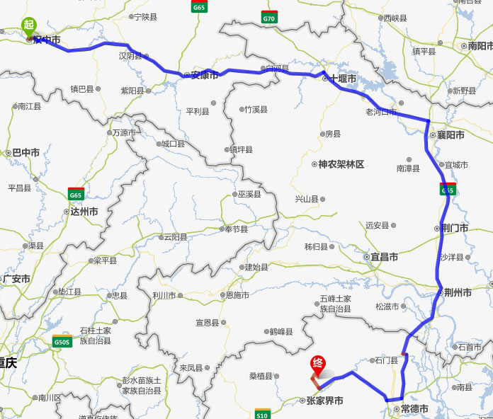 漢中去張家界自駕車自助游線路圖全程高速):
