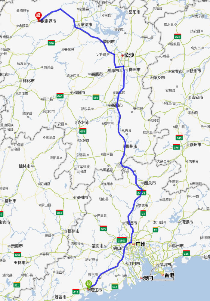 現(xiàn)在位置:張家界旅行社->交通指南->自駕車路線 -> 陽江到張家界旅游自駕車線路,陽江去張家界自己開車要多長時間,有多少公里