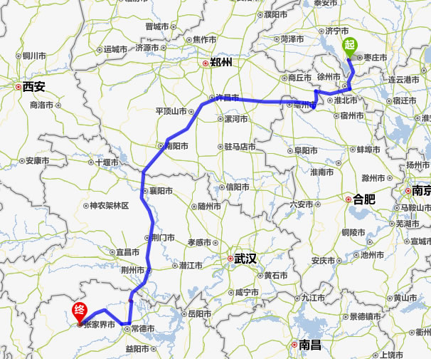 棗莊去張家界自駕車(chē)自助游線路圖全程高速):