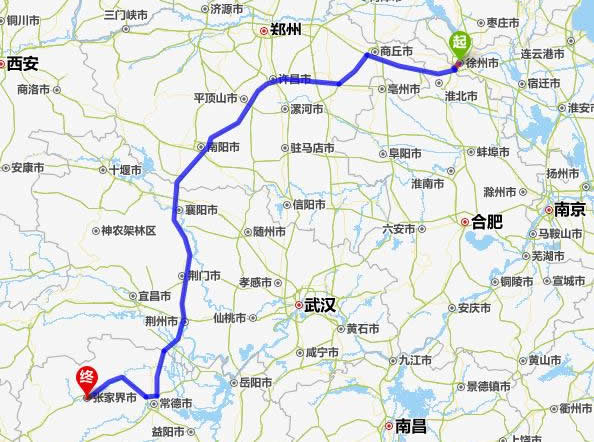 現(xiàn)在位置:張家界旅行社->交通指南->自駕車路線 -> 徐州到張家界旅游自駕車線路,徐州去張家界自己開車要多長時間,有多少公里