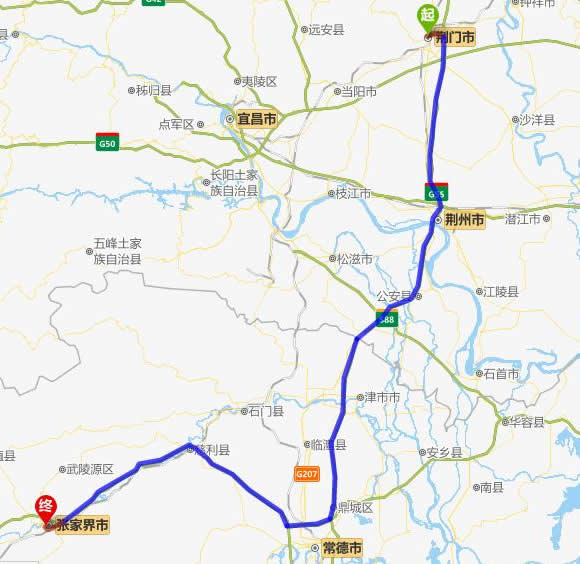 荊門(mén)去張家界自駕車(chē)自助游線路圖全程高速):