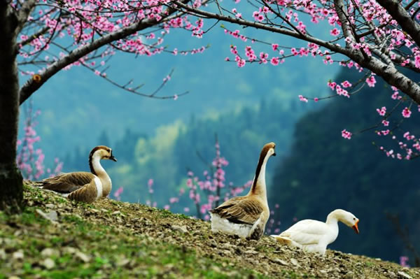 桃之夭夭,灼灼其華。據(jù)了解,天子山這處桃花仙境位于神堂灣至大觀臺之間的一農(nóng)場山丘內(nèi),面積足有一百畝以上。由于該地段剛好處于天子山至高點,因此極目遠眺,峰林風光、桃花美景盡收眼底。而盡管農(nóng)場,則是一派鄉(xiāng)村田園風情,一群雞鴨鵝不時穿梭在桃樹林內(nèi),一邊尋覓食物,一邊享受春光;看家護院的小黃狗迎接游客的熱情叫聲,讓人頓生回歸鄉(xiāng)愁之感。