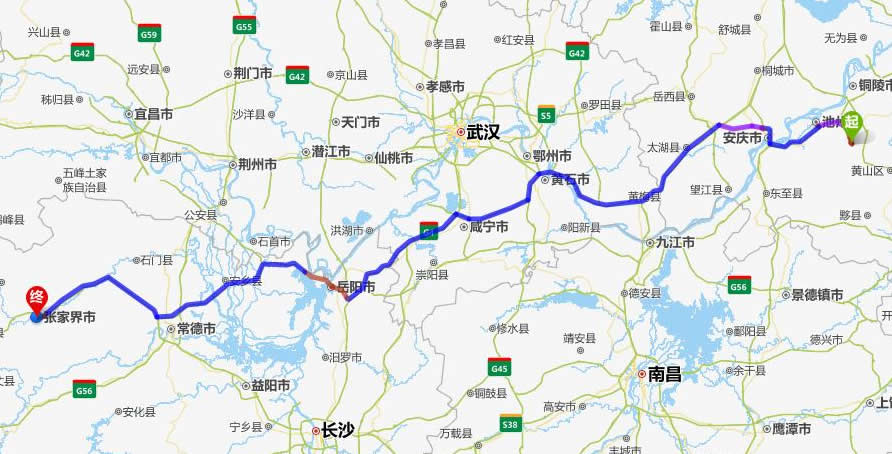 九華山去張家界自駕車自助游線路圖全程高速):